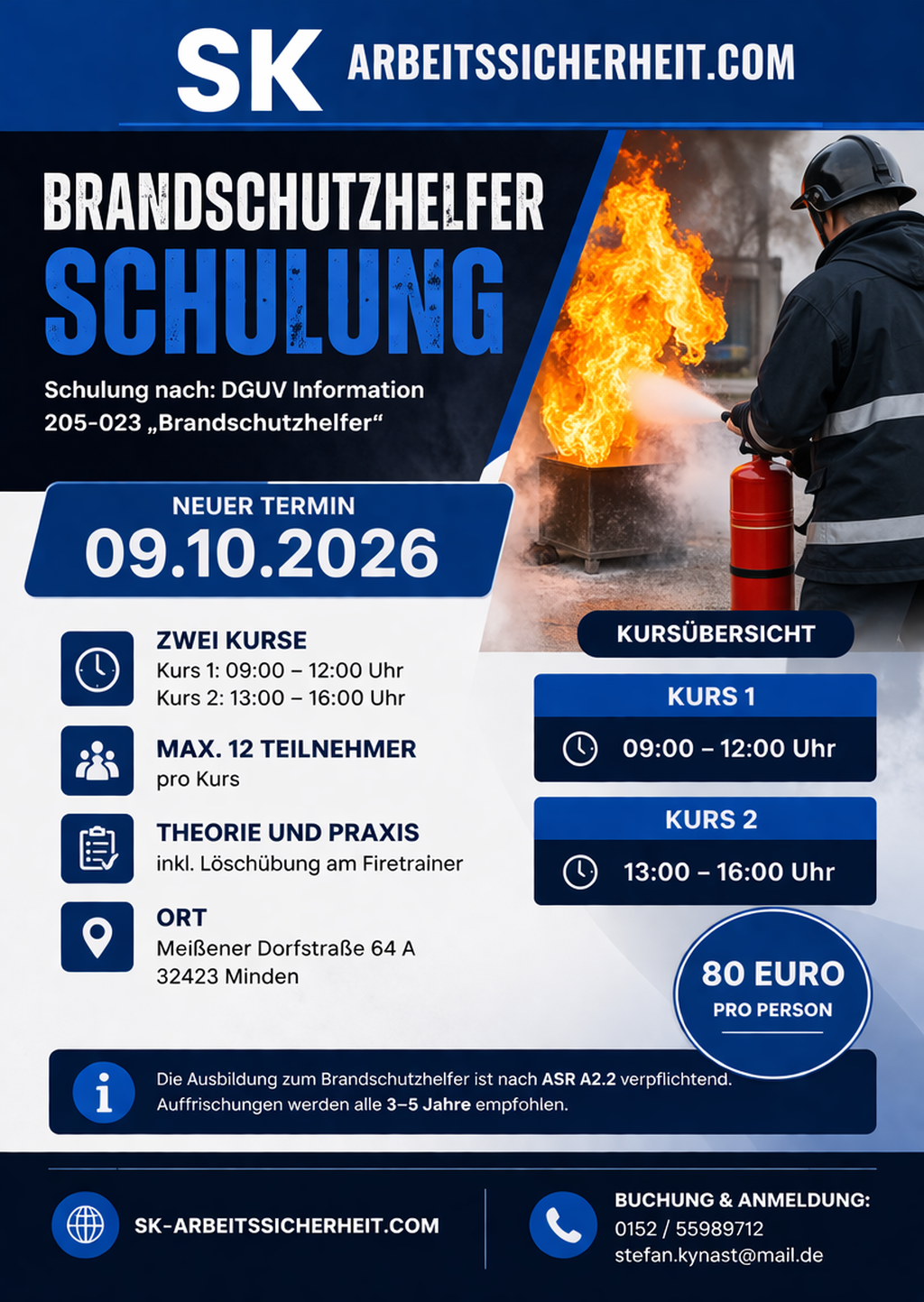 (§ 10 ArbSchG, ASR A2.2, DGUV Information 205-023) an.